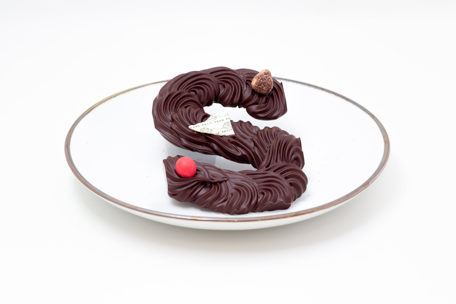 Luxe opgespoten chocoladeletter puur. Glutenvrij en melkvrij