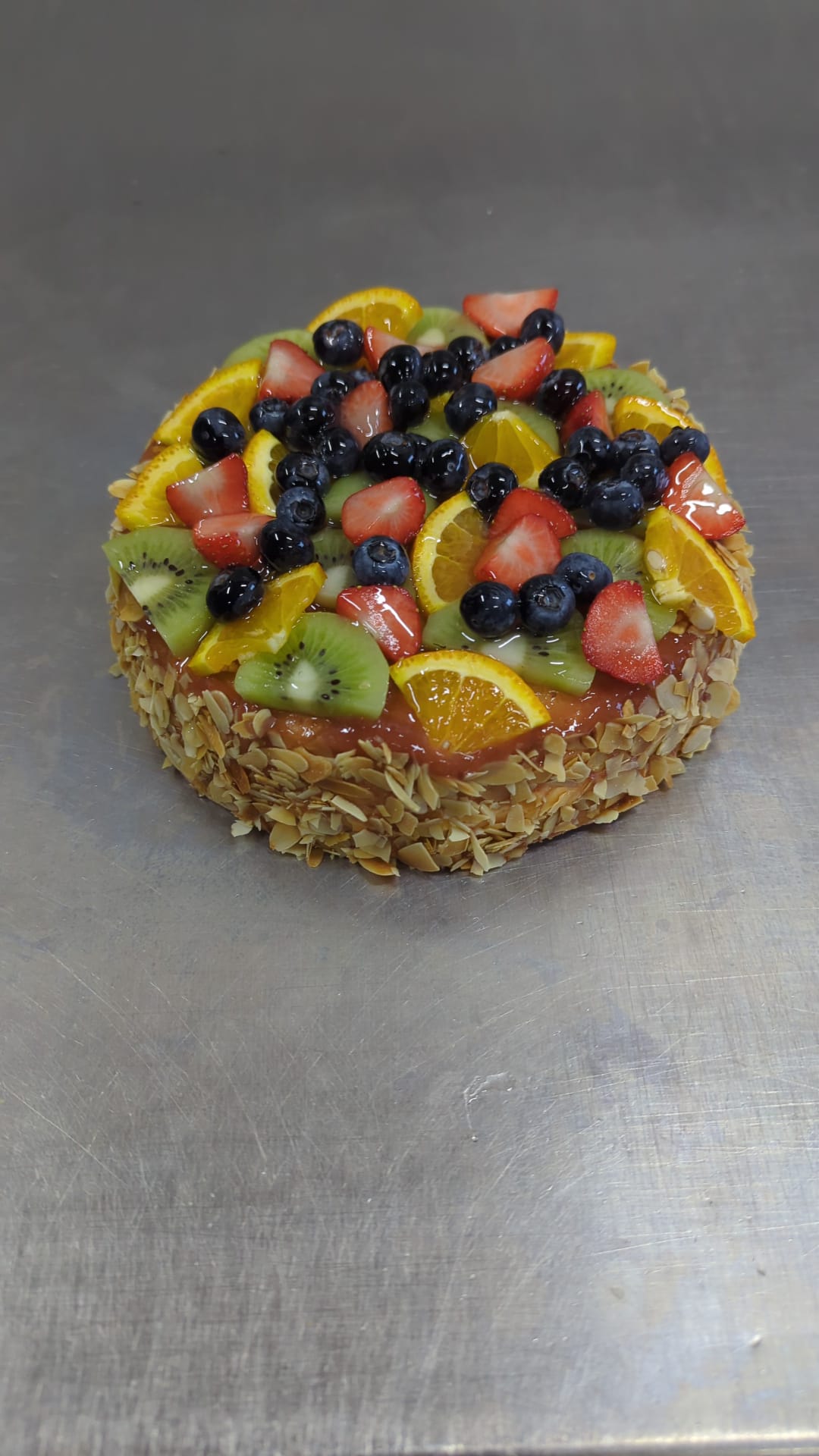 Verwen jezelf met onze heerlijke vruchtentaart, een perfecte traktatie voor elke speciale gelegenheid! Deze taart combineert een luchtig biscuitdeeg met een rijke vulling en een prachtig fruitdecoratie.