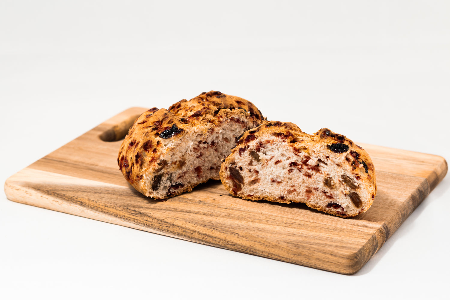 Ontdek ons rustieke, aromatische herfstbrood, perfect voor na een stevige wandeling! Dit heerlijke witte bolletje is gevuld met een smaakvolle mix van rozijnen, appel, cranberries en een vleugje kaneel, waardoor het een ware traktatie is voor de zintuigen.