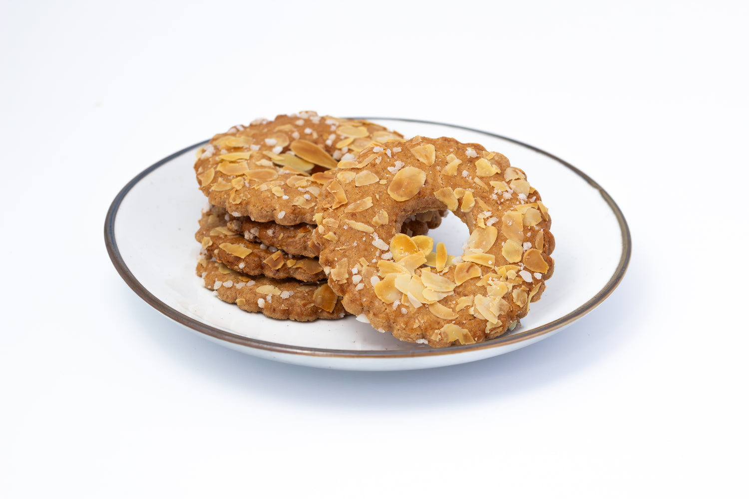 Heerlijk grote kerstkransen van ca 10 cm doorsnede. Gedecoreerd met amandelschaafsel en greinsuiker. Verpakt per 5 stuks.